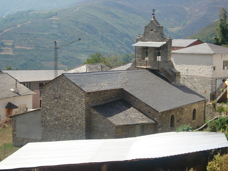 Construida con mampostería de piedra caliza, su fachada está culminada por espadaña de dos vanos que alojan sendas campanas. Tiene en la cúspide una veleta de hierro forjado que recrea un zorro persiguiendo a un gallo. Su interior consta de tres naves separadas por arcos de granito apoyados sobre columnas y pilastras del mismo material. La cubierta es de madera de castaño y pizarra.